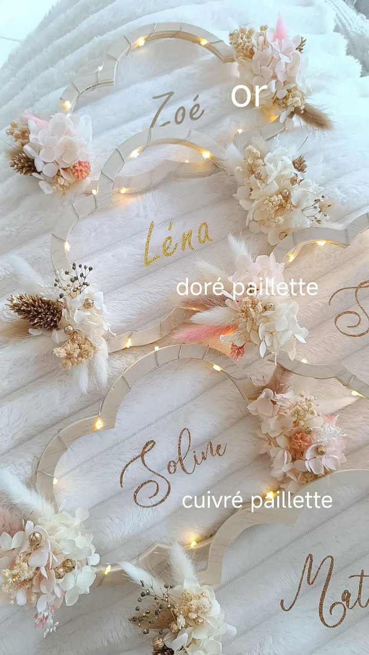 • Personnalisation : Ajoutez le prénom de l’enfant ou un autre mot au cœur de la couronne. Une belle manière de marquer un moment unique.