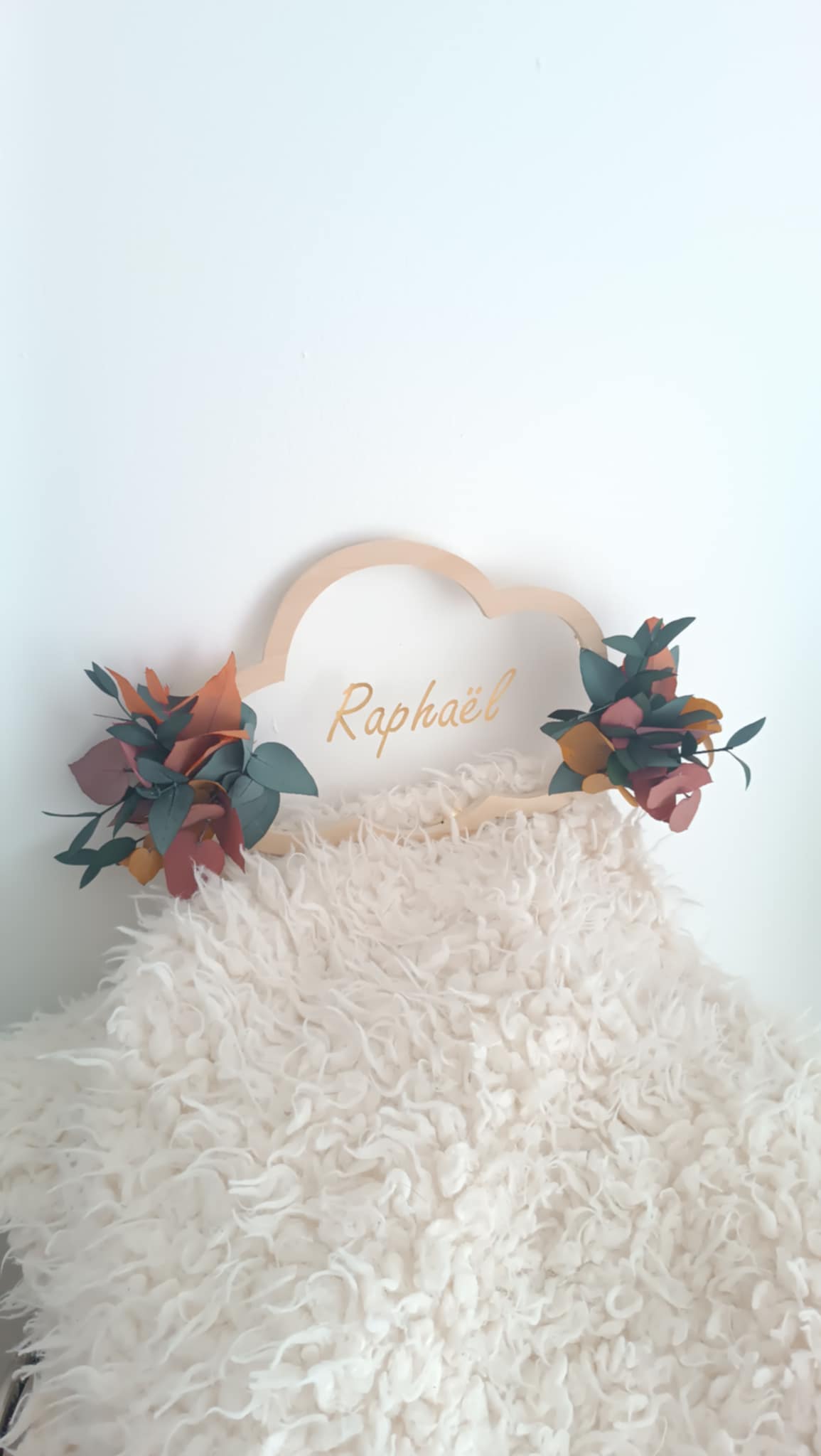 Suspendue comme une petite œuvre d’art murale, cette couronne nuage est un cadeau unique et émouvant pour célébrer une naissance, un baptême ou un premier anniversaire. Le prénom de l’enfant ( possible de choisir entre 2 polices et trois couleurs ) , en fait une pièce personnelle et précieuse qui trouvera naturellement sa place dans son univers.