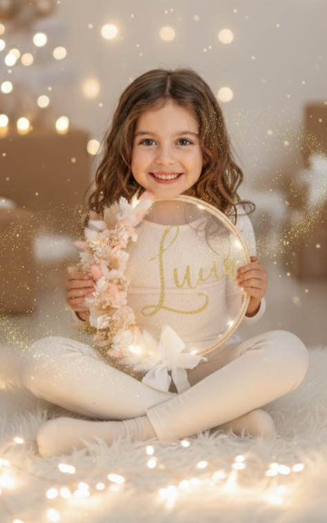 • Personnalisation : Ajoutez le prénom de l’enfant ou un autre mot au cœur de la couronne. Une belle manière de marquer un moment unique.