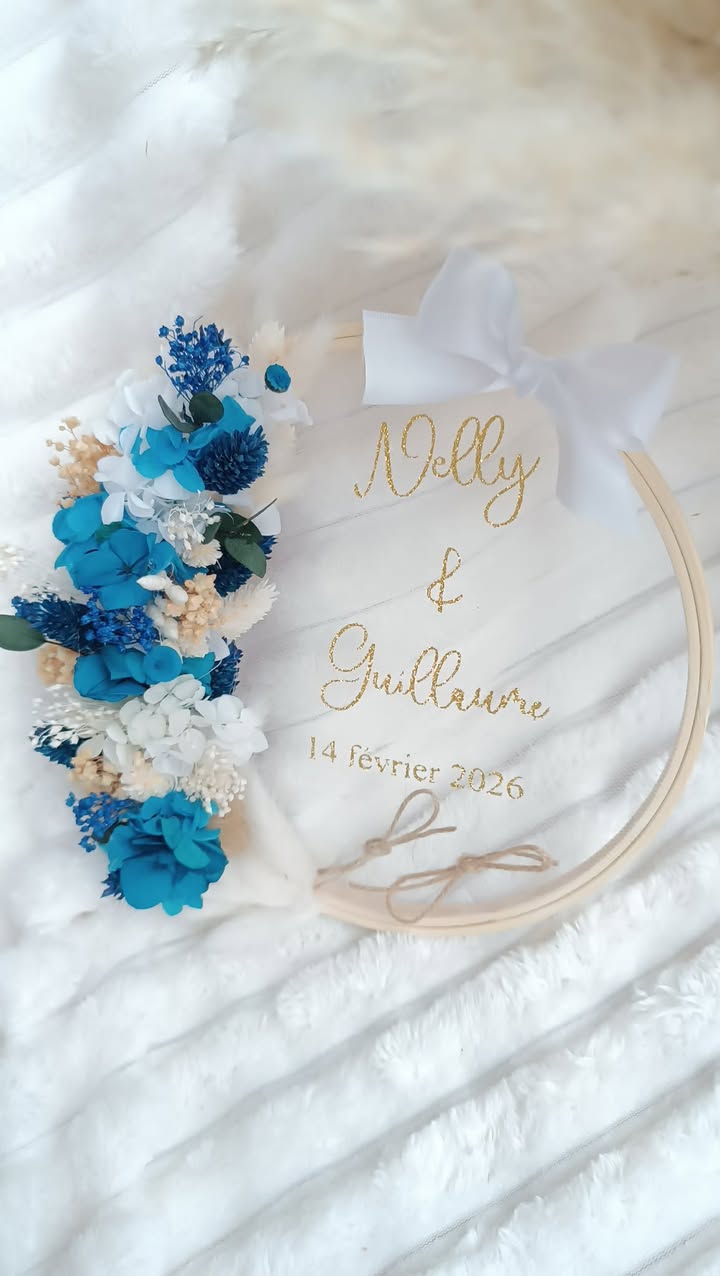 Immortalisez le jour de votre mariage avec ce porte-alliance unique et personnalisé, composé de magnifiques fleurs séchées et stabilisées. Ce modèle élégant, conçu pour durer dans le temps, sera un souvenir précieux de l’un des plus beau jour de votre vie.